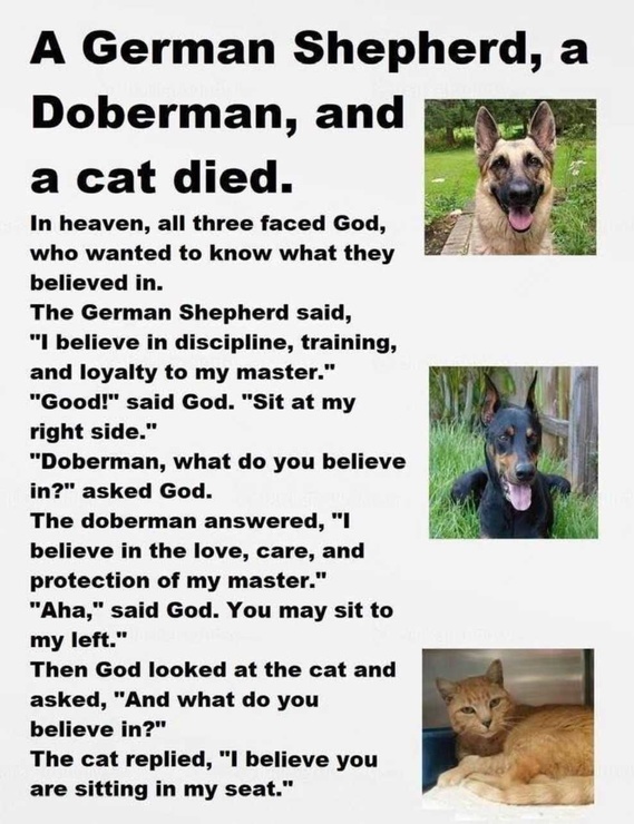 Two Dogs And A Cat Go To Heaven Funsubstance German Shepherd Quotes Loyalty German Shepherd Doberman